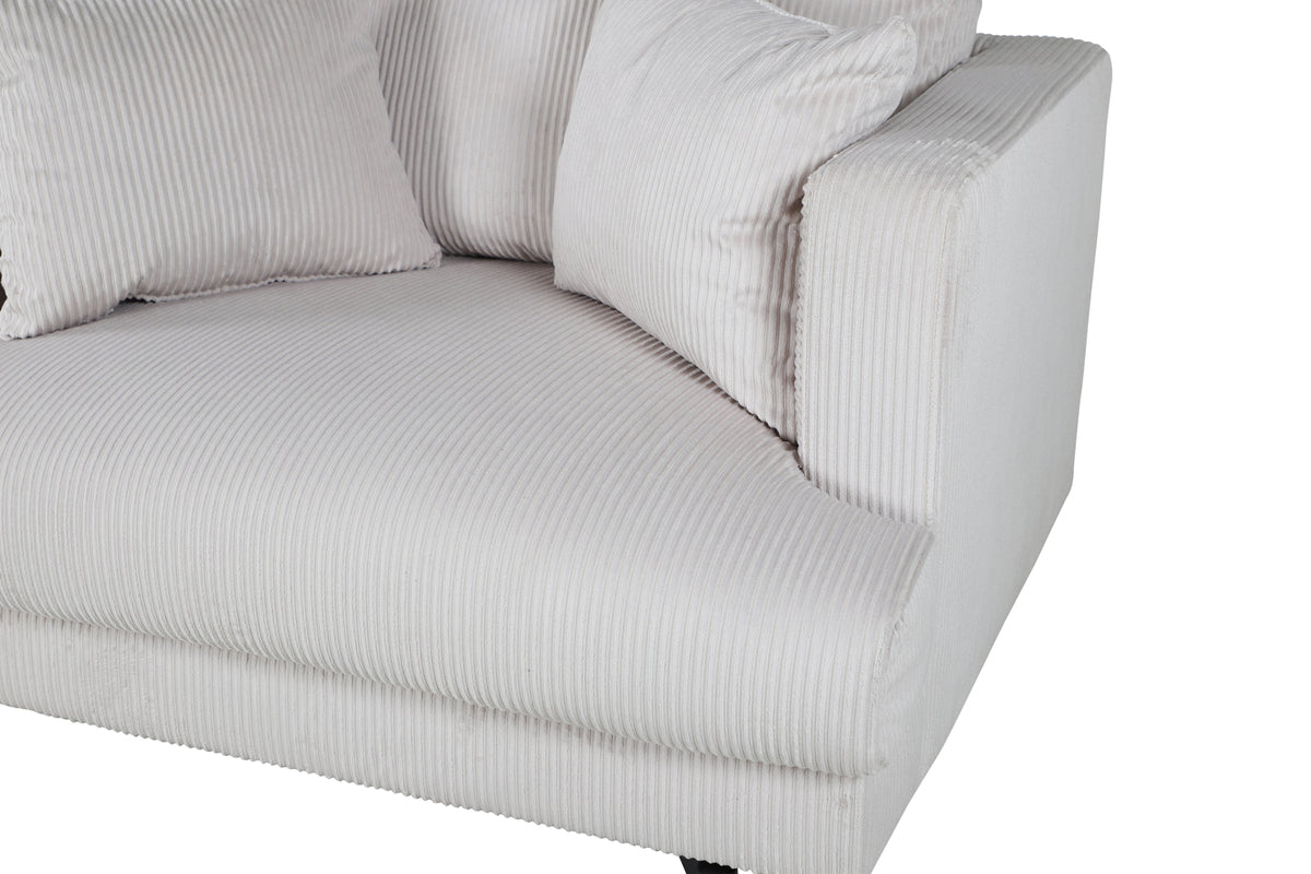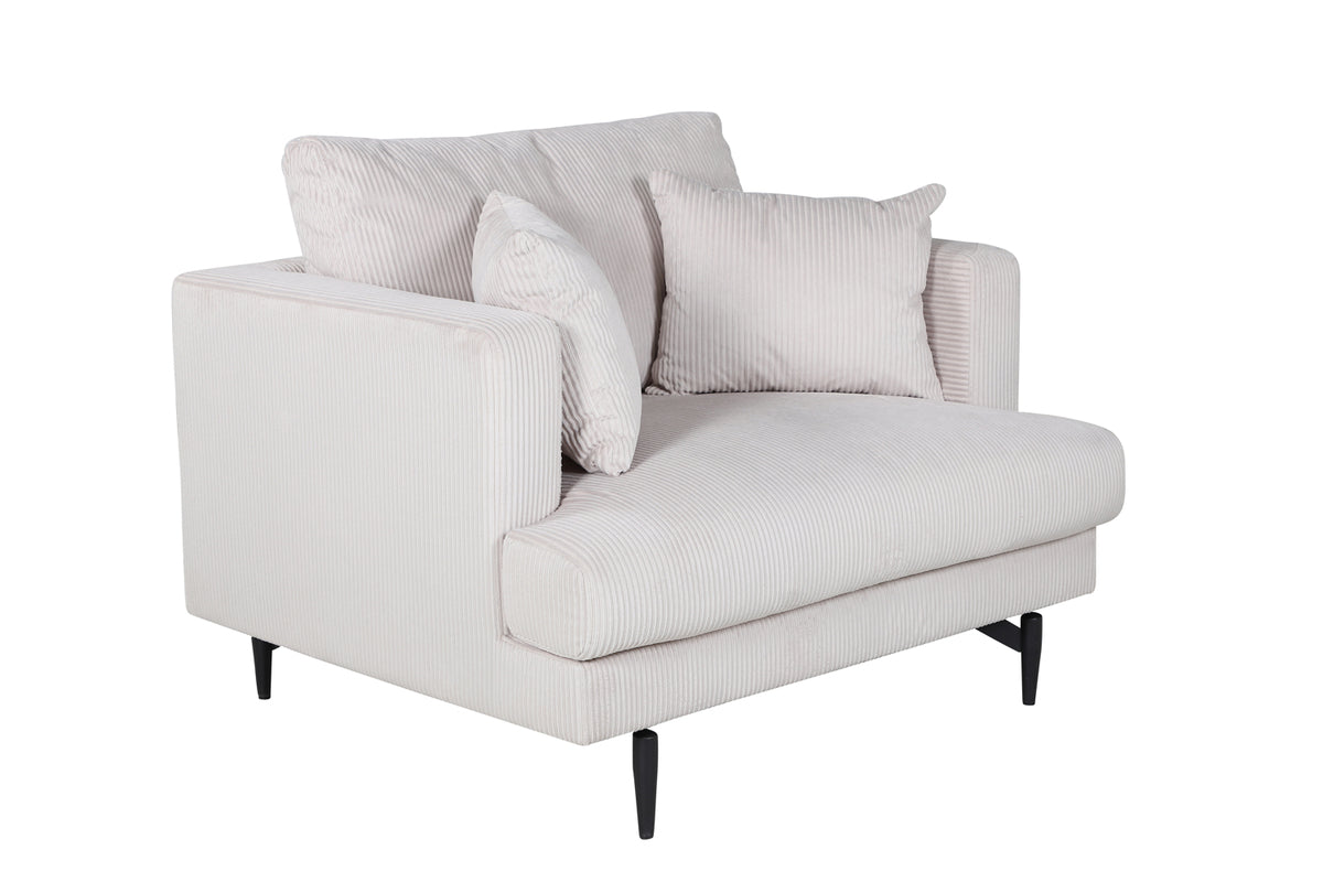 Låt modern design möta 50-tals nostalgin med den här trendiga manchesterfåtöljen i benvit kulör från serien Sofia! Klädd i lent ljust sammetstyg som ger fåtöljen ett härligt lyster och modern look till vardagsrummet. De raka men samtidigt mjuka formerna, de smala höga benen och det generösa sittdjupet skapar en luftig och inbjudande atmosfär. En otroligt genomtänkt helhetsdesign helt enkelt med klädd baksida som möjliggör att placera fåtöljen mitt i rummet. Möblera ensam som stilikon eller i grupp tillsammans med en matchande soffgrupp. Tips för Sammetsklädsel: Sammet har en tendens till att få tryckmärken när luggen lägger sig ner. Avtrycken kan göra att tyget ser slitet ut, vilket här helt normalt för den här typen av material. Beroende på hur ljuset faller kan tyget skifta i flertalet olika nyanser.