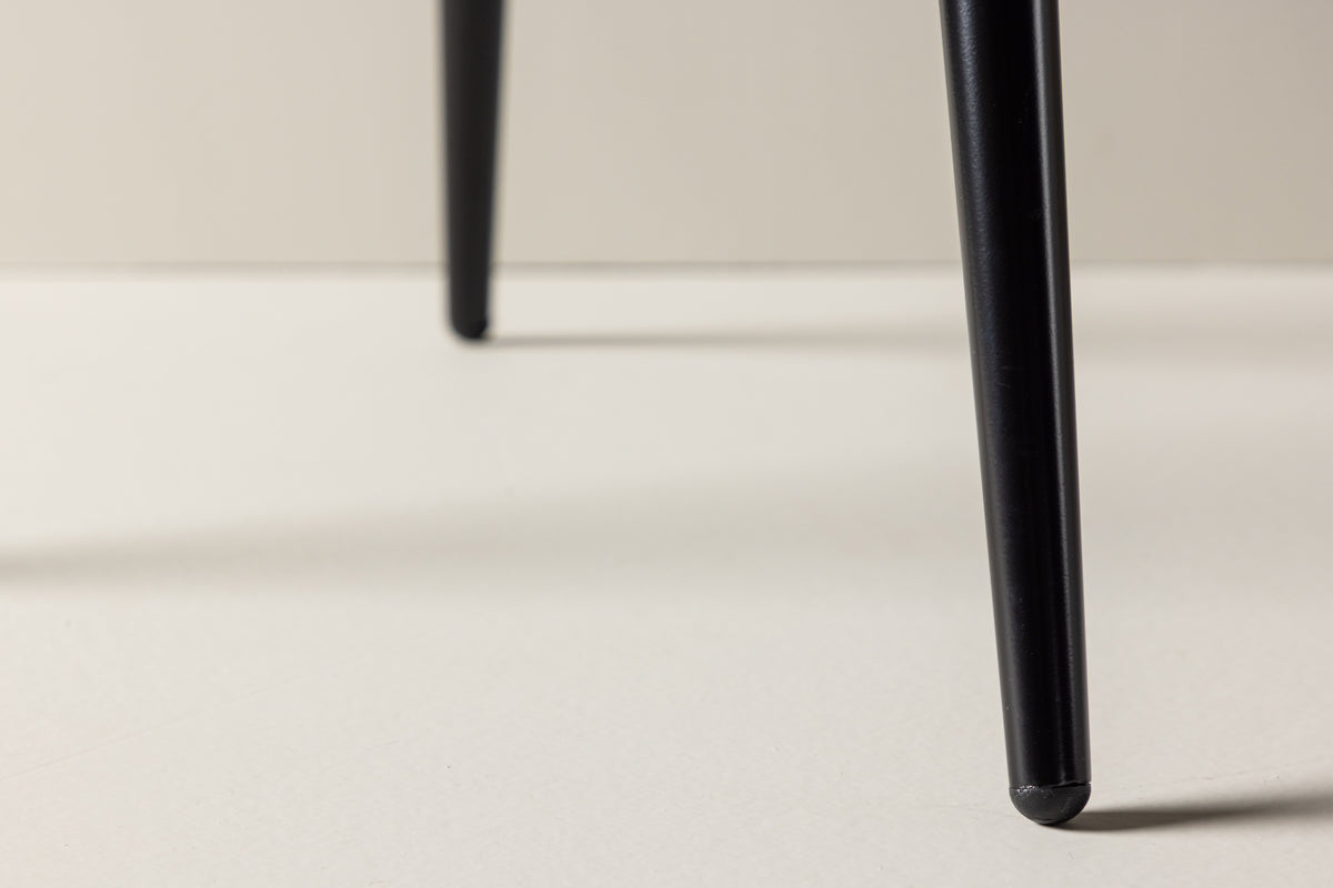 Stilren matstol i behaglig grå kulör med modern utformning – vad mer kan man önska? Velvet har en helklädd design, ben i svart pulverlackerad metall samt rundad rygg och sits i grått sammetstyg med mjuk stoppning. Slipp kompromissa mellan komfort och design! Lättare montering krävs. Skötselråd: Sammet har en tendens till att få tryckmärken när luggen lägger sig ner. Avtrycken kan göra att tyget ser slitet ut, vilket här helt normalt för den här typen av material. Beroende på hur ljuset faller kan tyget skifta i flertalet olika nyanser.