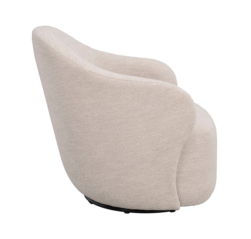 Chapeltown loungestol i ljusbeige textil är en stoppad fåtölj med mjuka, inbjudande former, dekorativa textilsömmar och bekväma armstöd för extra komfort. Den är designad för att ge ett omslutande stöd, perfekt för långa stunder av avkoppling. Tack vare snurrfunktionen är Chapeltown vacker från alla vinklar och blir en snygg detalj i rummet.