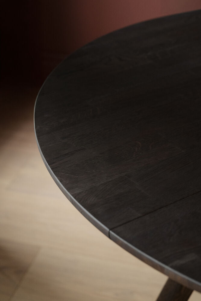 Bordet, som i sin grund är 140 cm, är dessutom praktiskt och flexibelt. Med en eller två iläggsskivor som köps separat kan det förlängas till ett ovalt bord på upp till 240 cm, vilket gör det enkelt att anpassa för både vardagliga middagar och större sociala sammanhang. Clapperton förenar funktion, hållbarhet och estetik i en genomtänkt helhet.