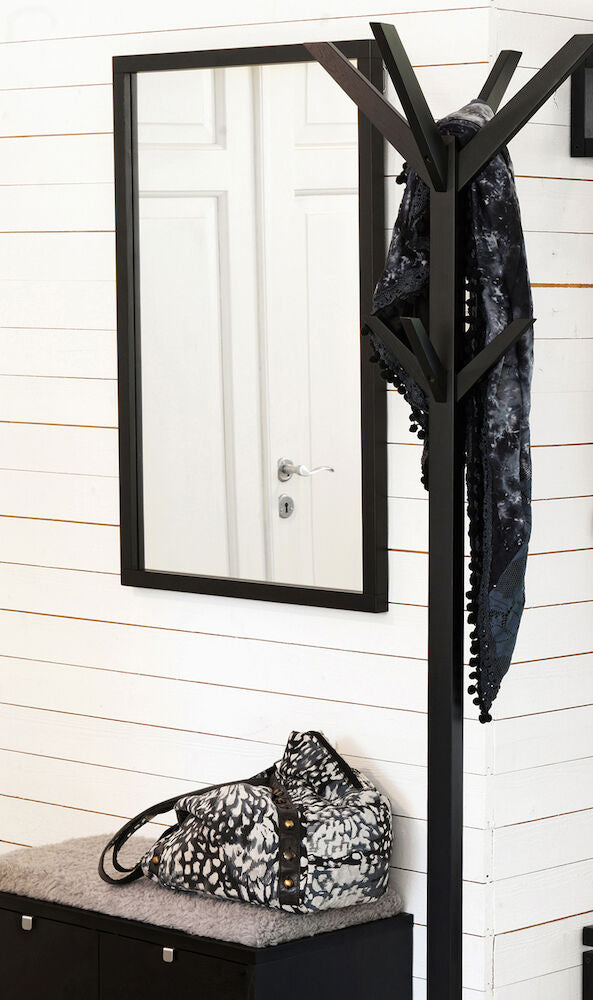 Confetti spegel med ram i svartlackad ek. Stilren och enkel att placera. Går att hänga både vertikalt och horisontellt. Spegeln ingår i vår hallserie Confetti.