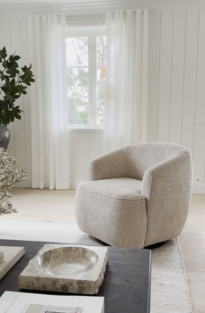 Dermot fåtölj snurr+gung ljusbeige tyg Anna