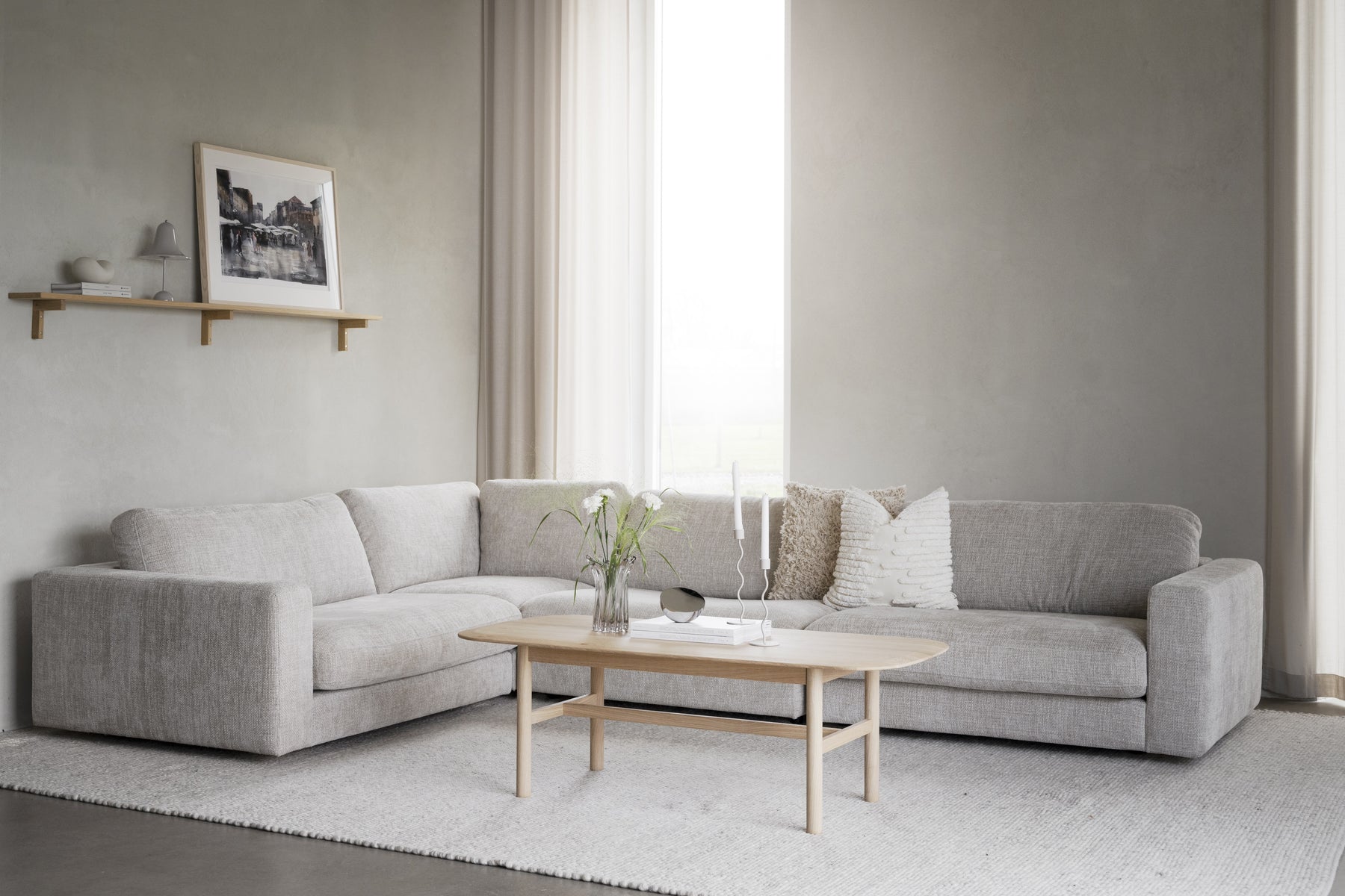 Duncan hörnsoffa 2+3-sits ljusgrått tyg Robin