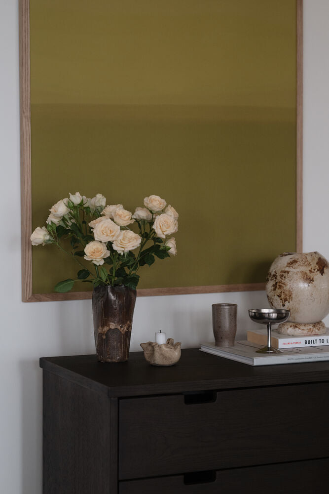 De mjukstängande lådorna är ett tydligt bevis på omsorgsfullt hantverk och genomtänkta detaljer. De glider tyst och följsamt, vilket inte bara bidrar till en exklusiv känsla i användningen utan även skyddar möbeln över tid. Den naturliga träkänslan förstärker byråns varma uttryck och gör den enkel att kombinera med både moderna och mer traditionella interiörer.