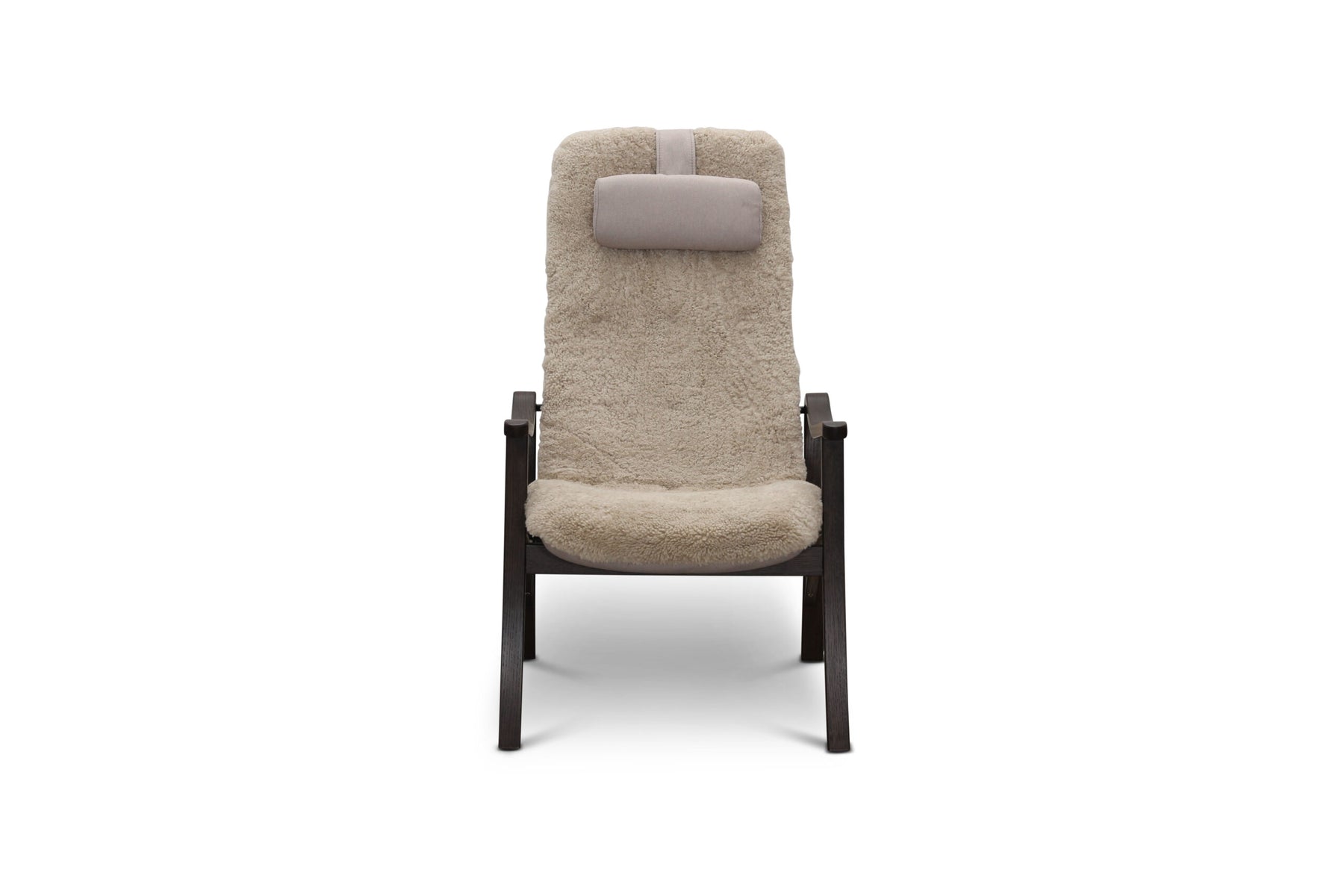 Gotland är en klassisk fårskinnsfåtölj med fotpall som kombinerar tidlös design med naturlig komfort. Sittdynan i äkta fårskinn är avtagbar för enkel rengöring och finns i tre färger, liksom armstöd och ben i ekfaner som kan mixas fritt. Fårskinnet värmer när det är kallt och svalkar när det är varmt, och varje skinn är unikt i nyans och struktur. Den avtagbara nackkudden ger extra stöd och baksidan är klädd i OEKO-TEX-certifierat tyg.