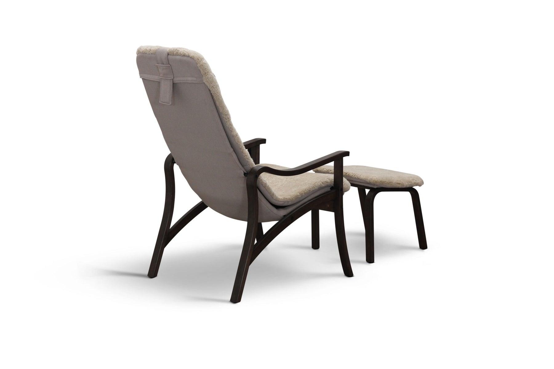 Gotland fåtölj med fotpall fårskinn Moonlight/brun