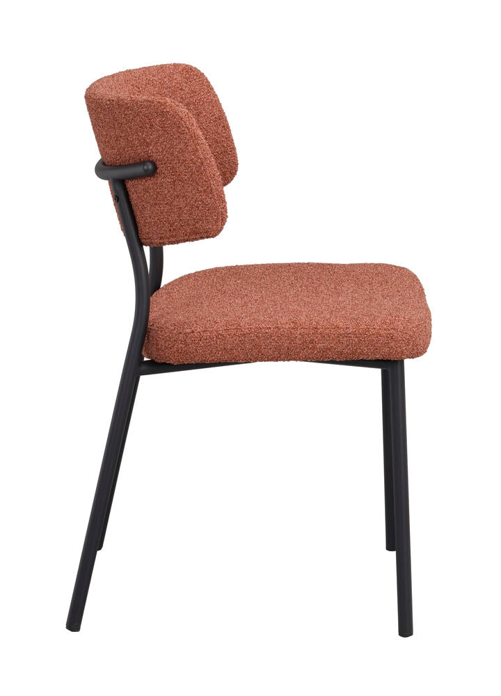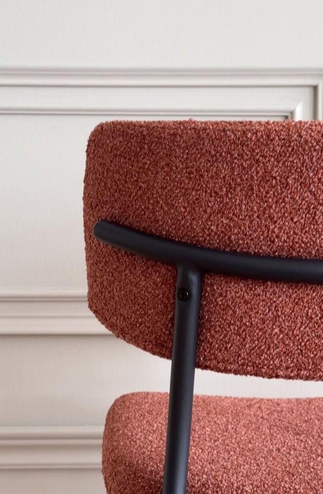 Herbster är en modern och prisvärd stol med hög komfort och stilren design. Den är klädd i ett slitstarkt rött tyg med en grov, boucléliknande struktur som ger både karaktär och en mjukt taktil känsla. Färgen är trendig, perfekt för dig som vill skapa ett uppdaterat uttryck i hemmet. Med sin sköna sits, moderna form och tåliga material passar Herbster lika bra vid matbordet som extra sittplats i vardagsrummet.