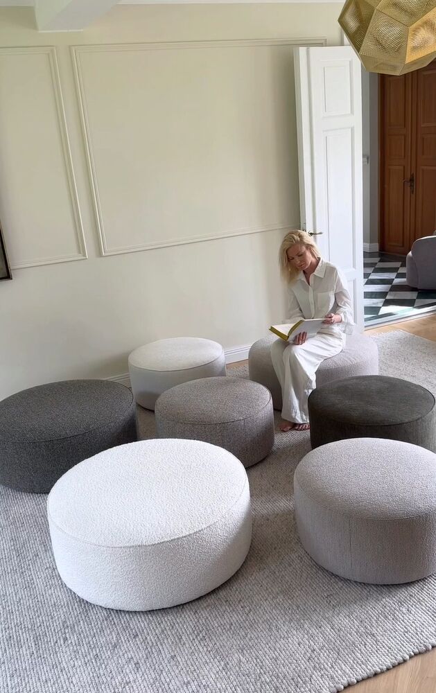 Joplin i storlek Ø70 cm är en stilren och mångsidig sittpuff som passar lika bra som extra sittplats, fotpall eller mjukt avlastningsbord. Den finns i två olika storlekar och i vårt lagerförda sortiment är de klädda i det omtyckta tyget Alice ljusbeige (#01), en färg som passar till många olika soffor och gör puffen till ett perfekt komplement till soffgruppen.