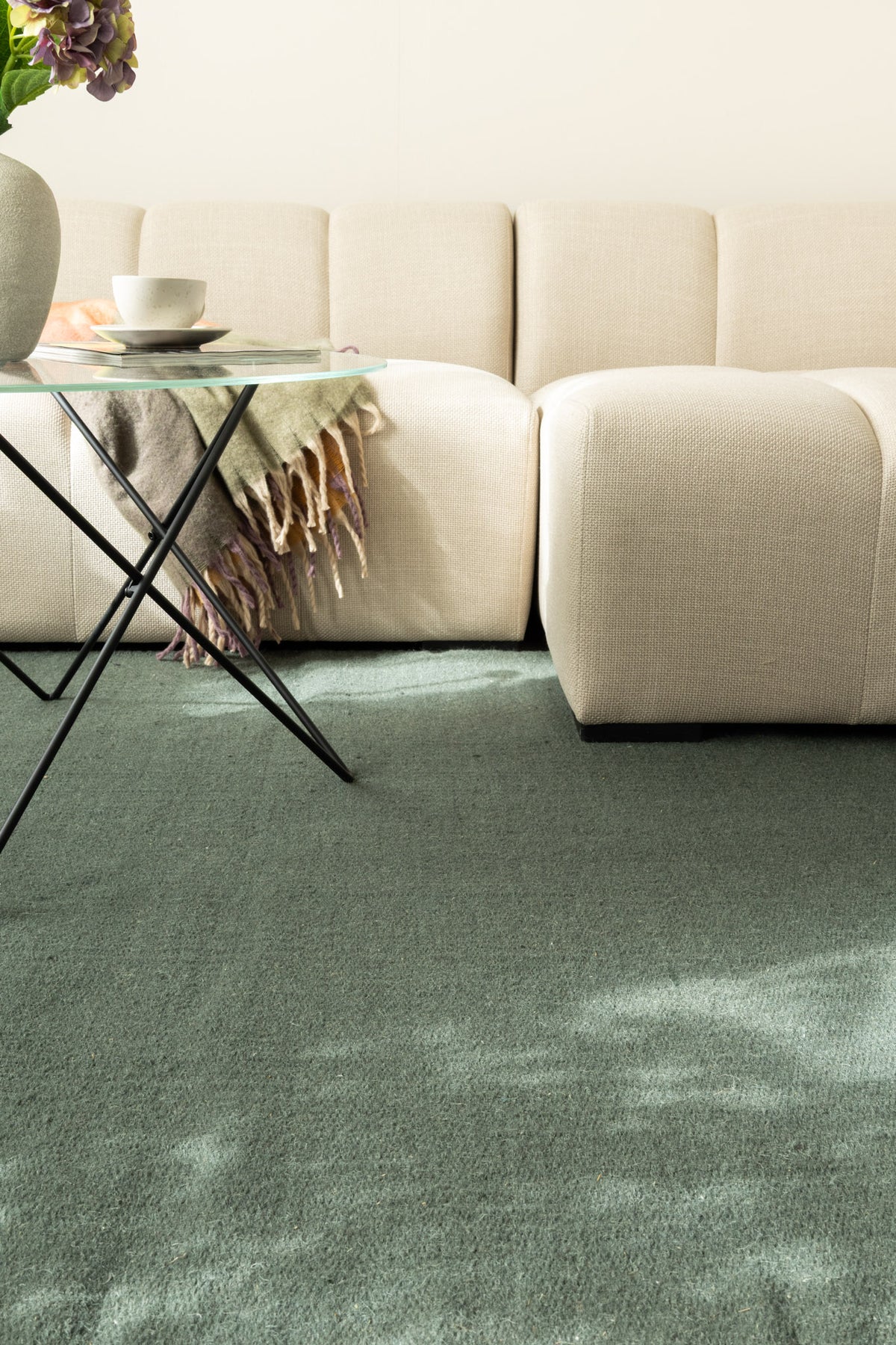 Molly Smaragdgrön har en djup och rik grön ton som ger rummet ett elegant och ombonat uttryck. Den mättade färgen framhäver ullens naturliga struktur och lyster och skapar ett vackert djup i inredningen. Resultatet är en stilfull och tidlös matta som tillför både karaktär och harmoni, oavsett om den placeras i vardagsrum eller sovrum.