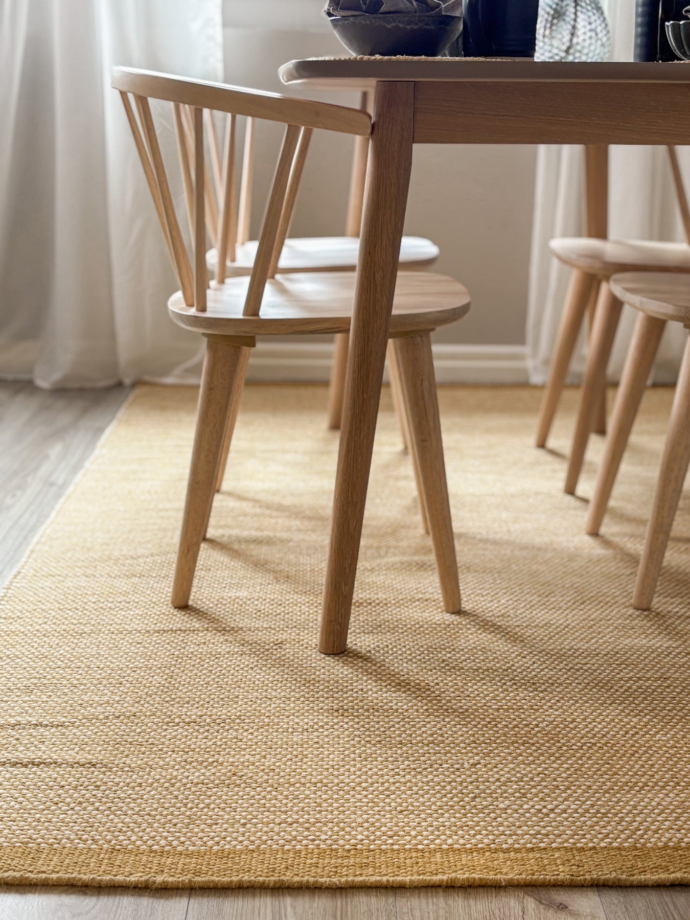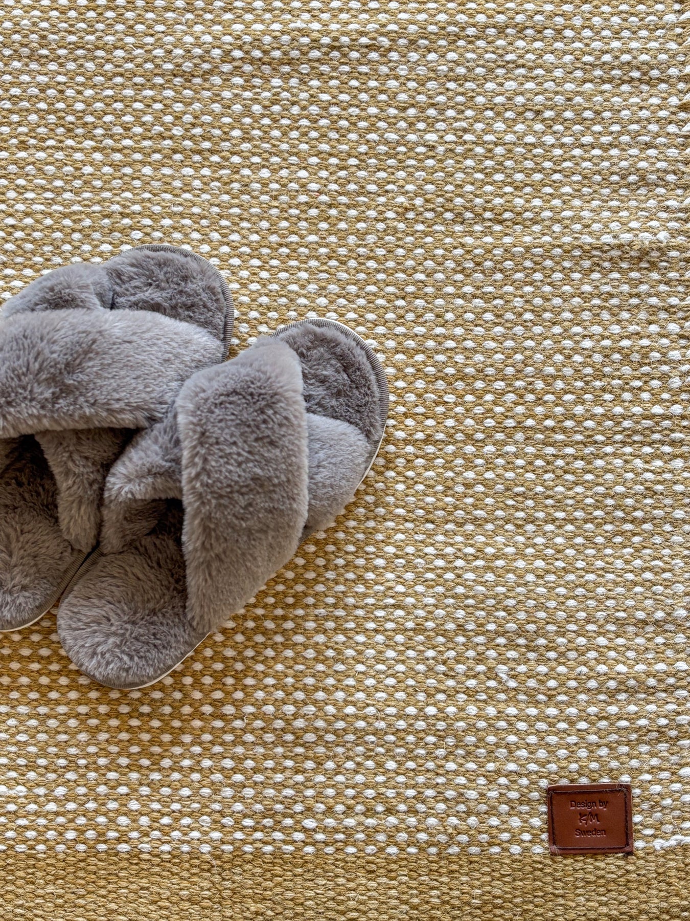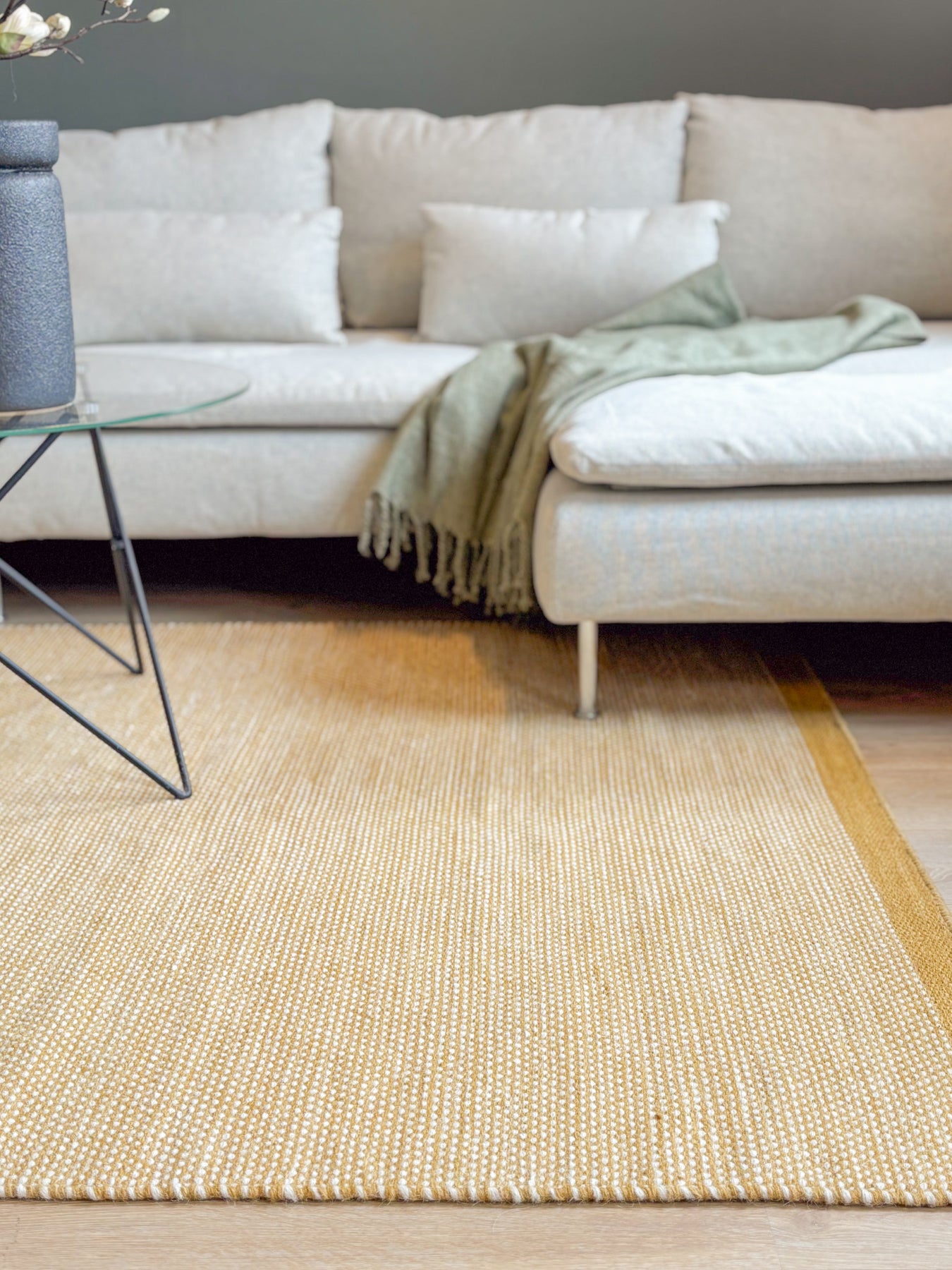 Sandhamn Ockragul har en varm ockragul ton som ger rummet ett levande och ombonat uttryck. Den mustiga färgen tillför både värme och karaktär samtidigt som den framhäver mattans struktur på ett elegant sätt. Resultatet är en stilfull matta som fungerar som ett mjukt blickfång och passar lika bra i vardagsrum som i sovrum.