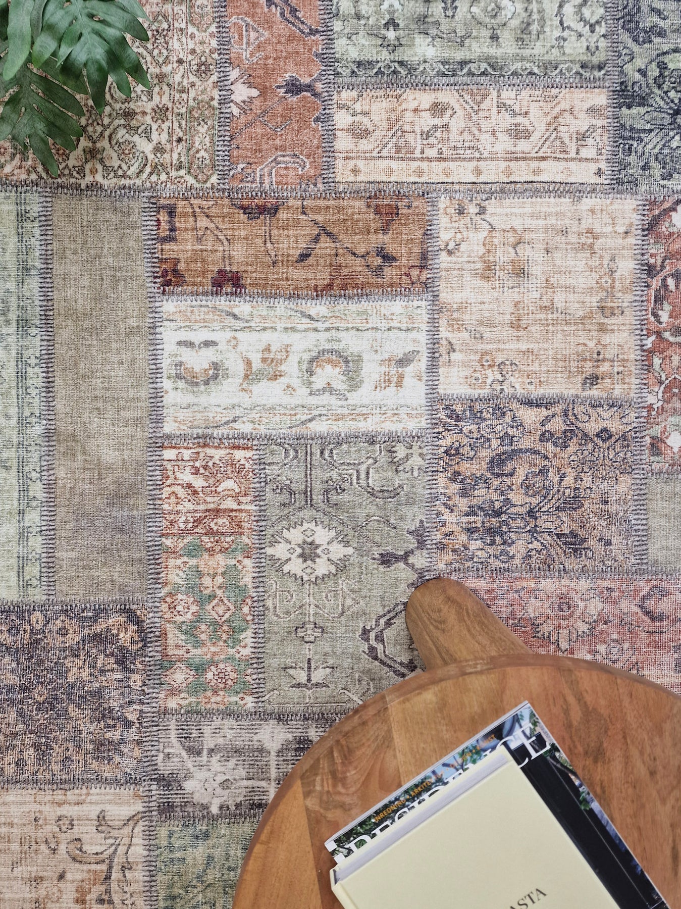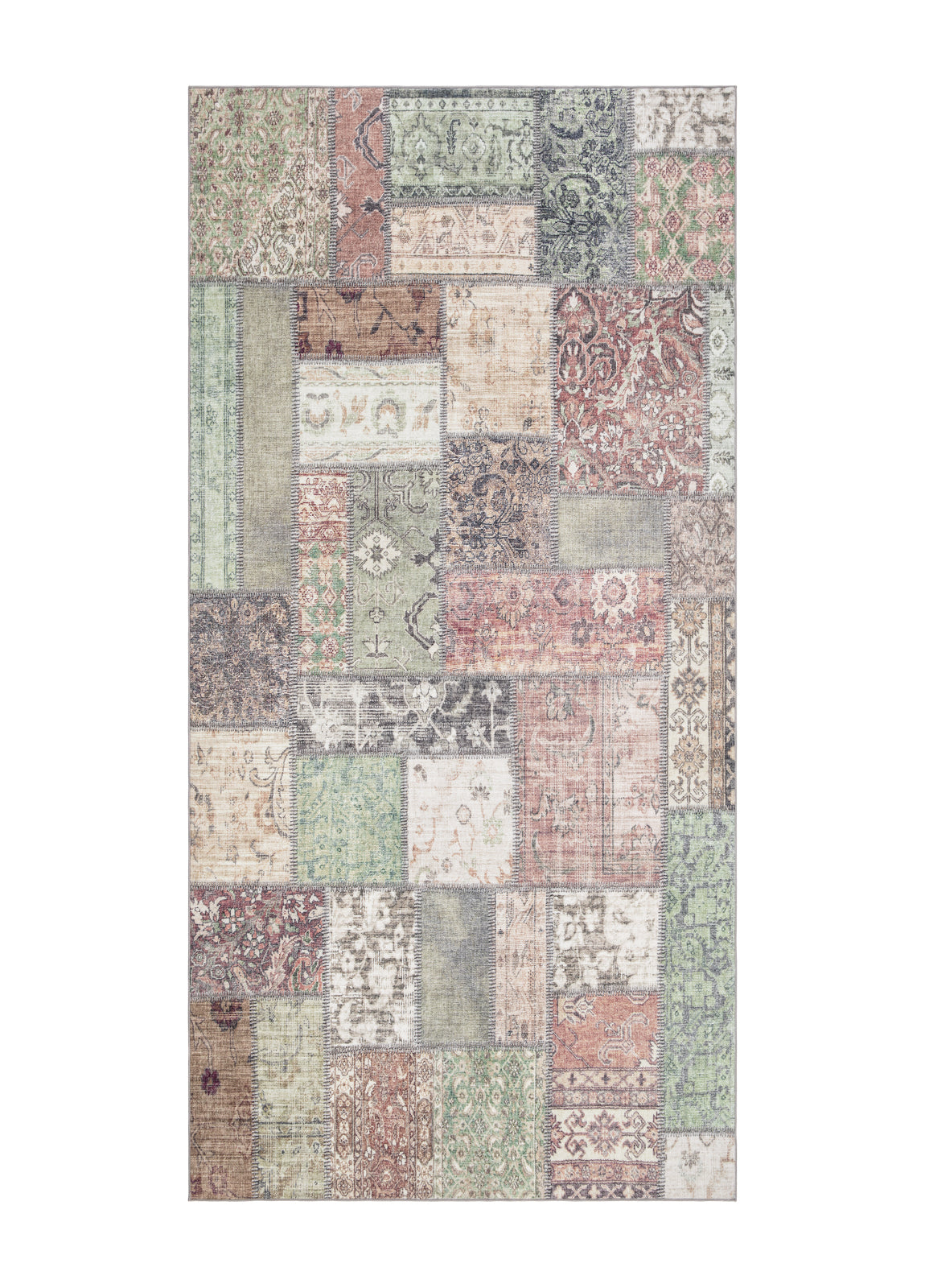 Tarfaya Patch Grön har ett mycket färglatt rutigt lapptäcksmönster. Grundtonen i mattan är grön men den har även ett flertal rutor i andra färger och mönster. Alla snyggt matchade tillsammans med en ”söm”. Tarfaya är en serie maskinvävda mjuka mattor med ett tryckt mönster och som är tvättbara. En matta man bara måste ta på! De har den där mjuka pälskänslan fast med kort lugg. Tacksamt då smutsen inte tränger ner i mattan. Den tål värmegolv samt går bra att tvätta i maskin. De har en halkfri TPR baksida vilket även för att de ligger kvar på plats. Perfekt för alla åldrar och hem. Ombonat och färgglatt för alla rum.