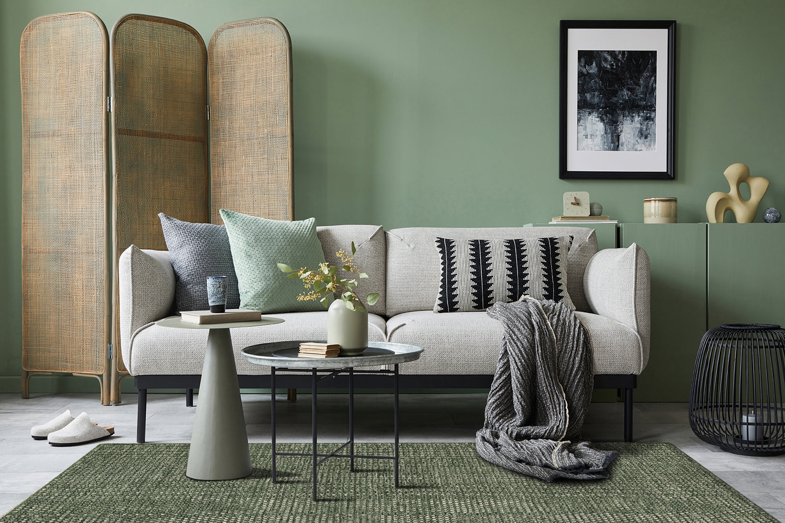 Torekov är en handvävd matta i modern touch, den är vävd i en behagligt mjuk grön ton tillsammans med naturfärgad och svart varptråd. Garnets trådar går i flera nyanser av grönt vilket ger en melerade levande känsla till mattan. Torekov är vändbar och går att använda på båda sidor. Den kommer också i flera storlekar och former vilket gör att den är lätt att hitta en plats för i ditt hem.