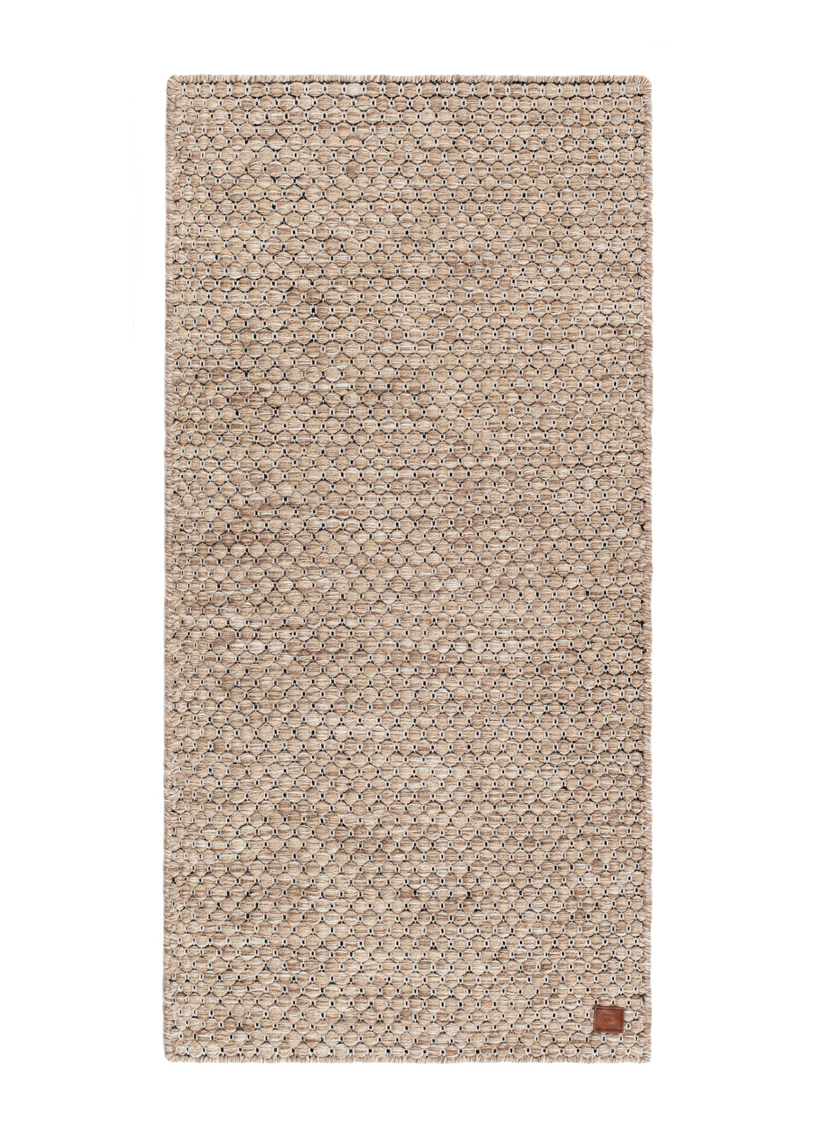 Torekov är en handvävd matta i modern touch, den är vävd i en behaglig linnefärg och svart varptråd. Det linnefärgade garnet blandas med en naturfärgad och en cremevit ton och ger en melerade levande känsla i mattan.